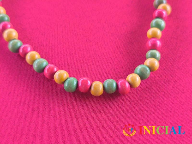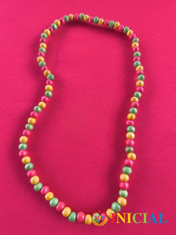 Zenska ogrlica od trobojnih,drvenih kuglica,duz.29cm.