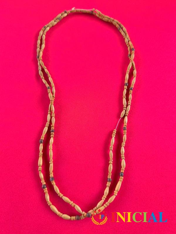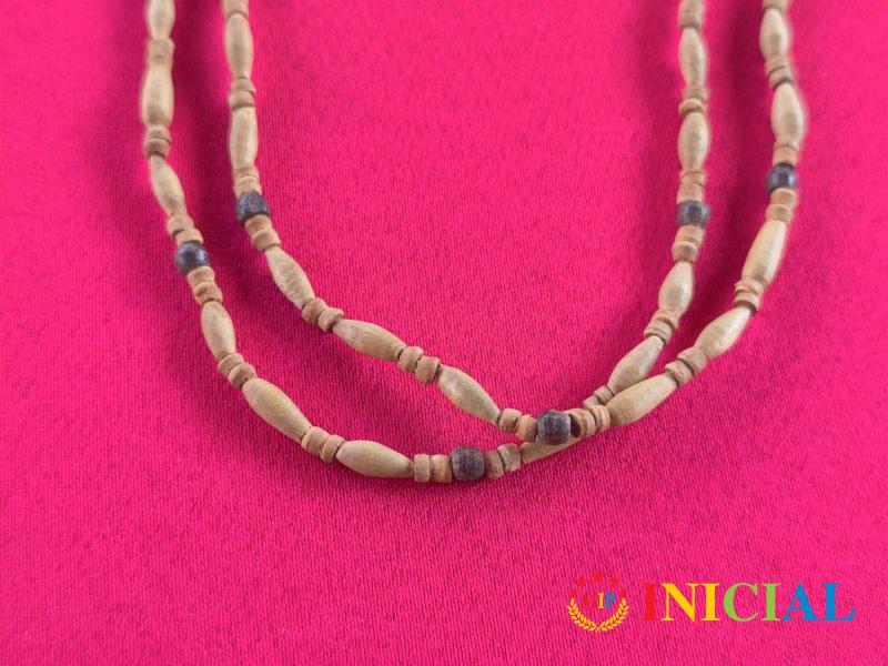 Zenska ogrlica sa drvenim komponentama,duz.65cm.