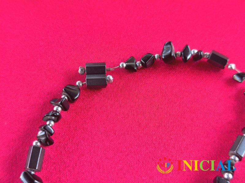 Zenska magnetna ogrlica od Hematita i kamena Oniksa,duz.41cm.