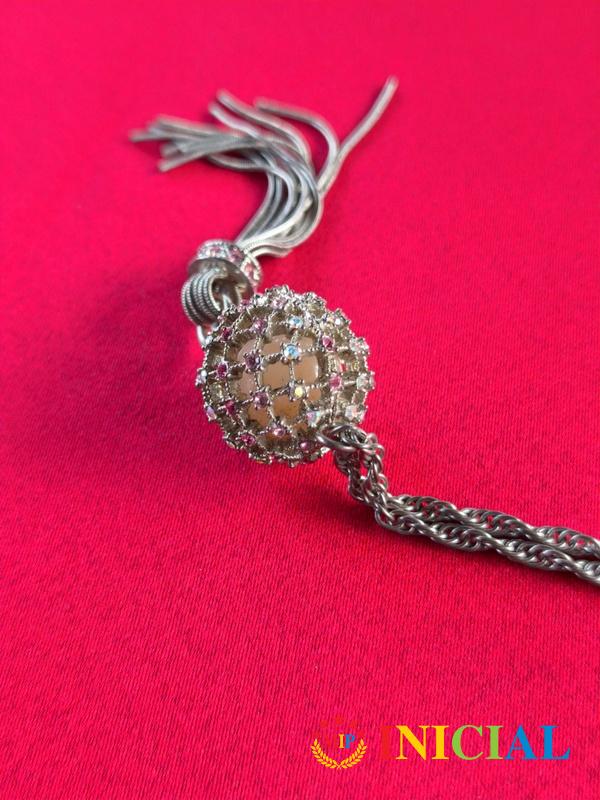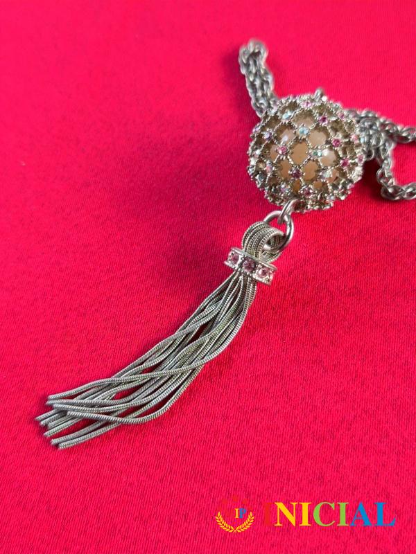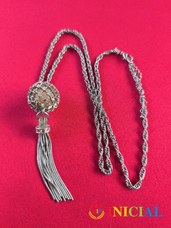 Zenska ogrlica sa lopticom(20mm) na kojoj su raznobojni Cirkoni,duz.41cm.
