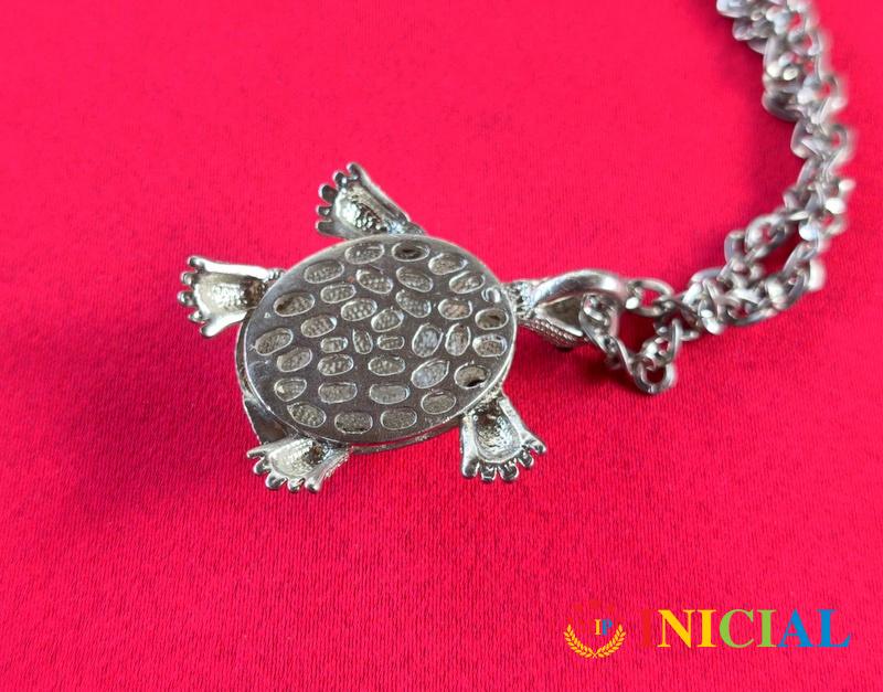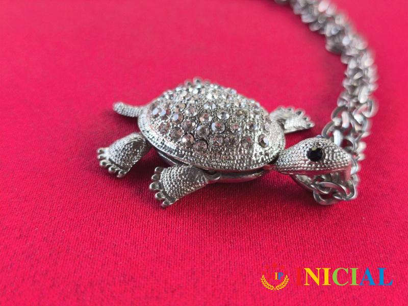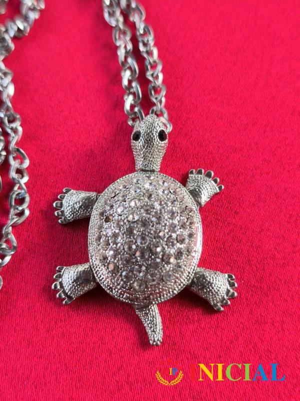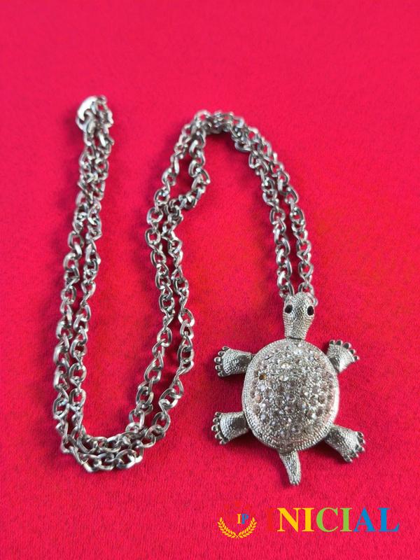Zenska ogrlica sa kornjacicom na kojoj je puno Cirkona,pomeraju se sve noge,duz.41cm.