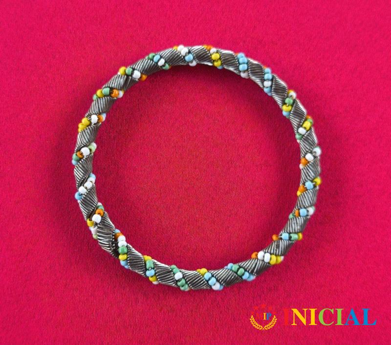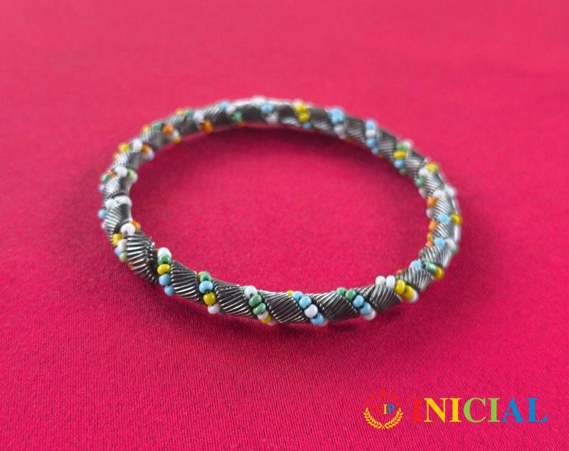 Zenska,metalna narukvica sa puno sitnih poludragih kamena,precnik 65mm.