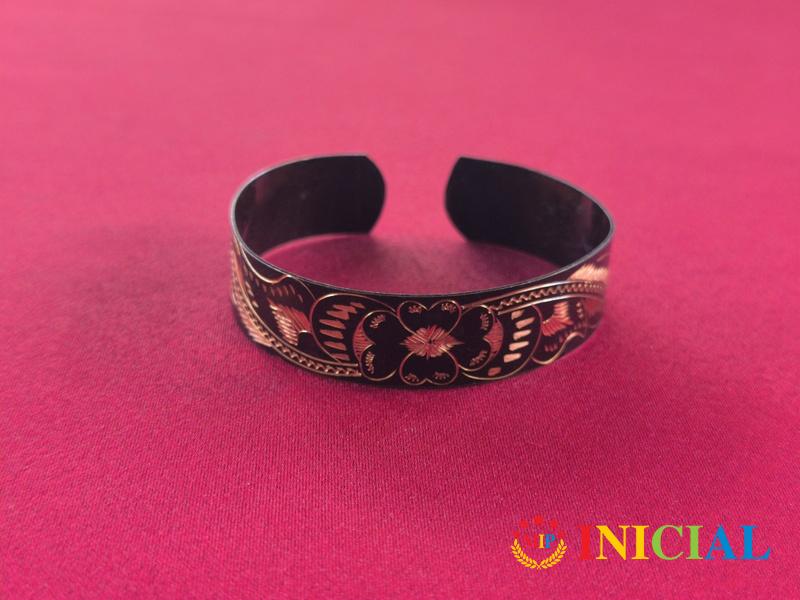 Unisex bakarna narukvica sa lepim gravurama,blago elasticna,sirina 62mm.