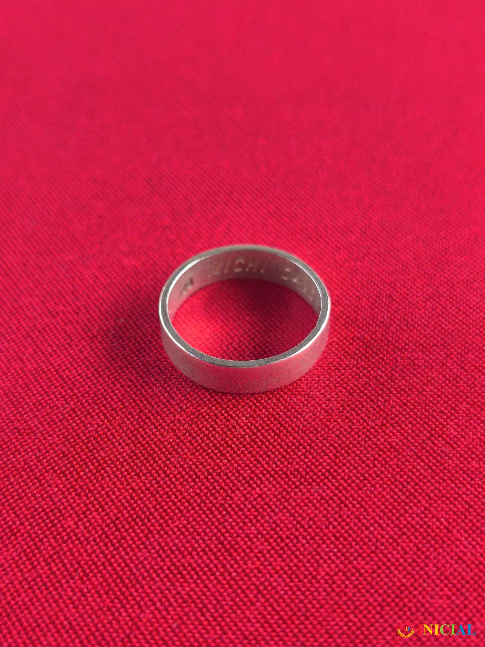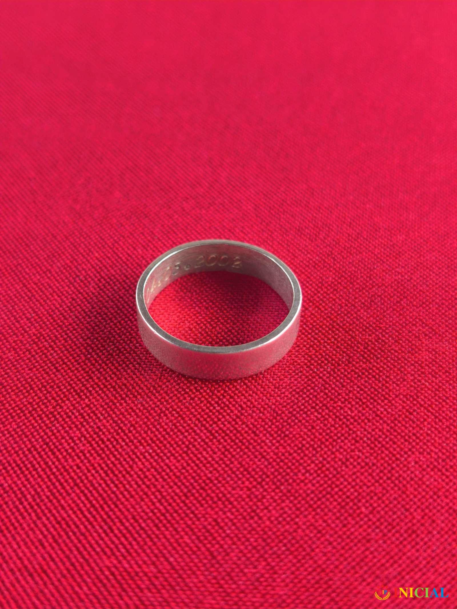 Srebrni prsten sa zigom 925,precnik 19mm,unutra ima ugravirano Michi 4.3.2002,tezina 3,7gr.