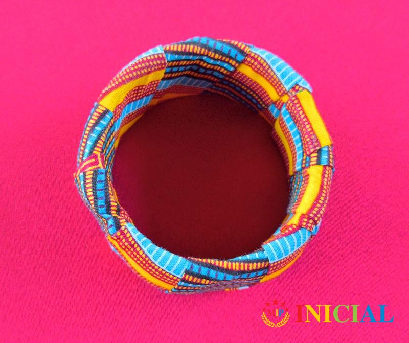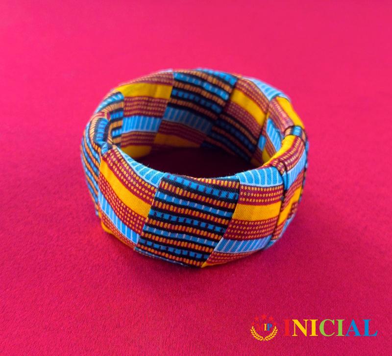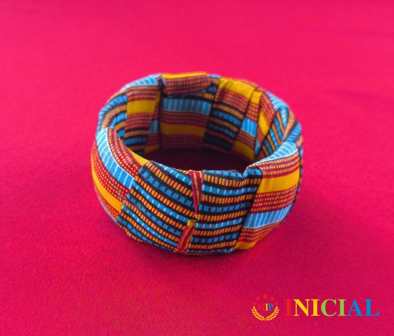 Zenska narukvica presvucena platnom,precnik 64mm,sirina 35mm,otvara se.