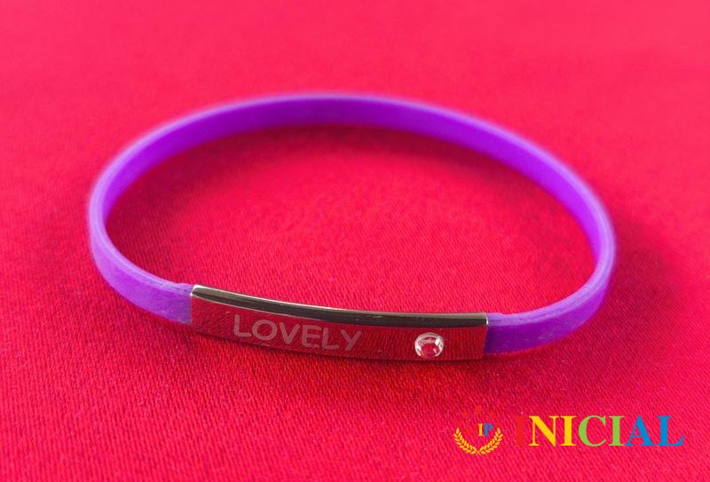 Silikonska narukvica sa 1 Cirkonom i tekstom Lovely (Divno),sir.4mm.
