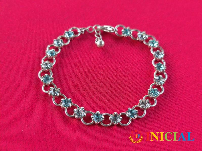 Zenska posrebrena narukvica sa kamenom Akvamarin,duz.20,5cm.