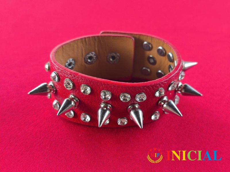 Unisex kozna narukvica sa vise Cirkona i metalnih kupica,dim.21 x 3cm.