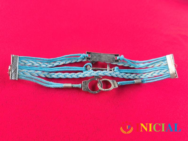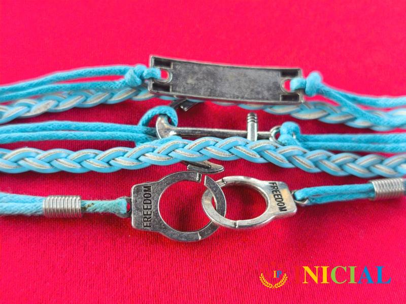Unisex kozna narukvica sa plocicom Friend(Prijatelj),Freedom(Sloboda) i lengerom,dim.17,5 x 2,5cm.