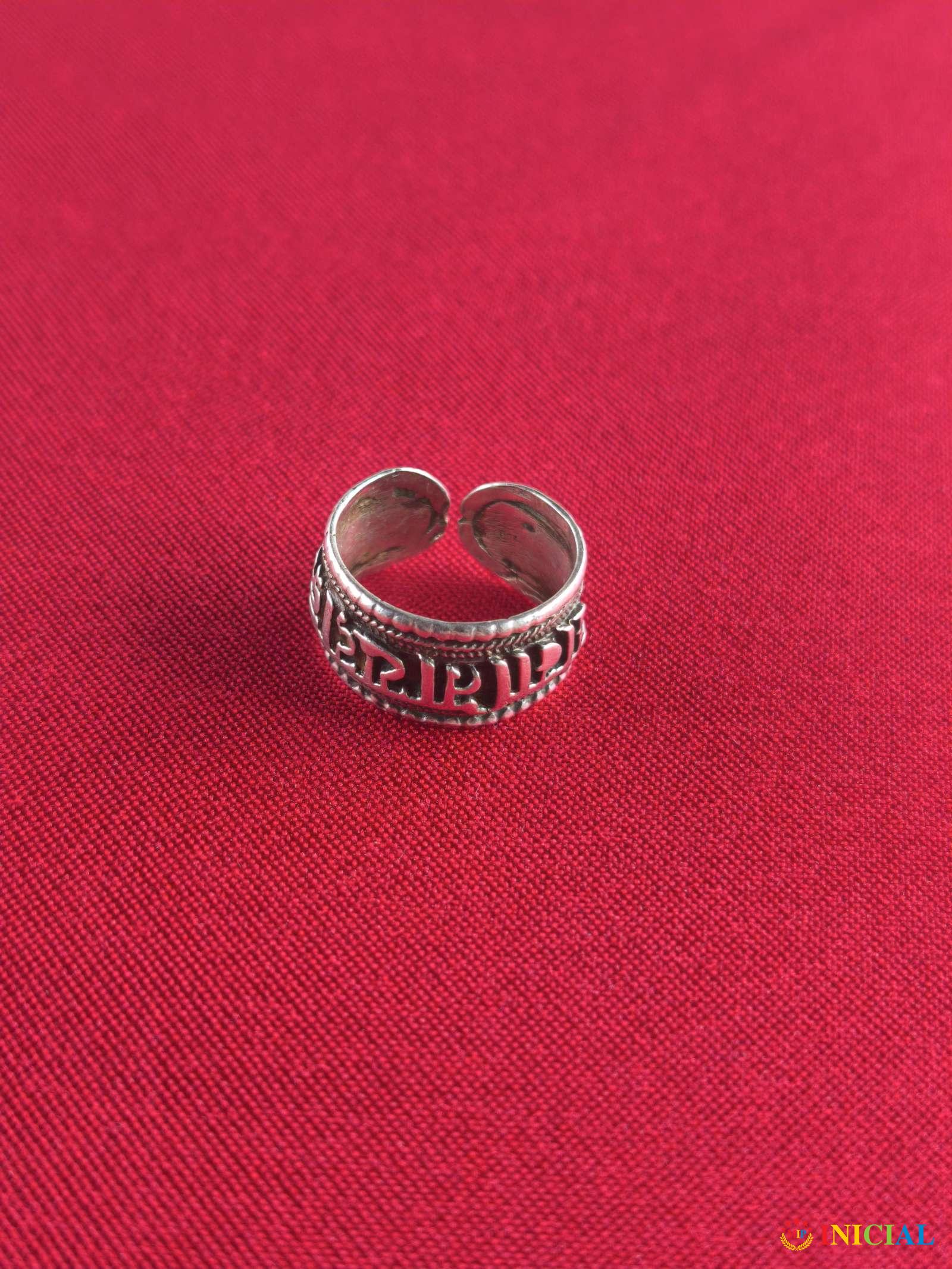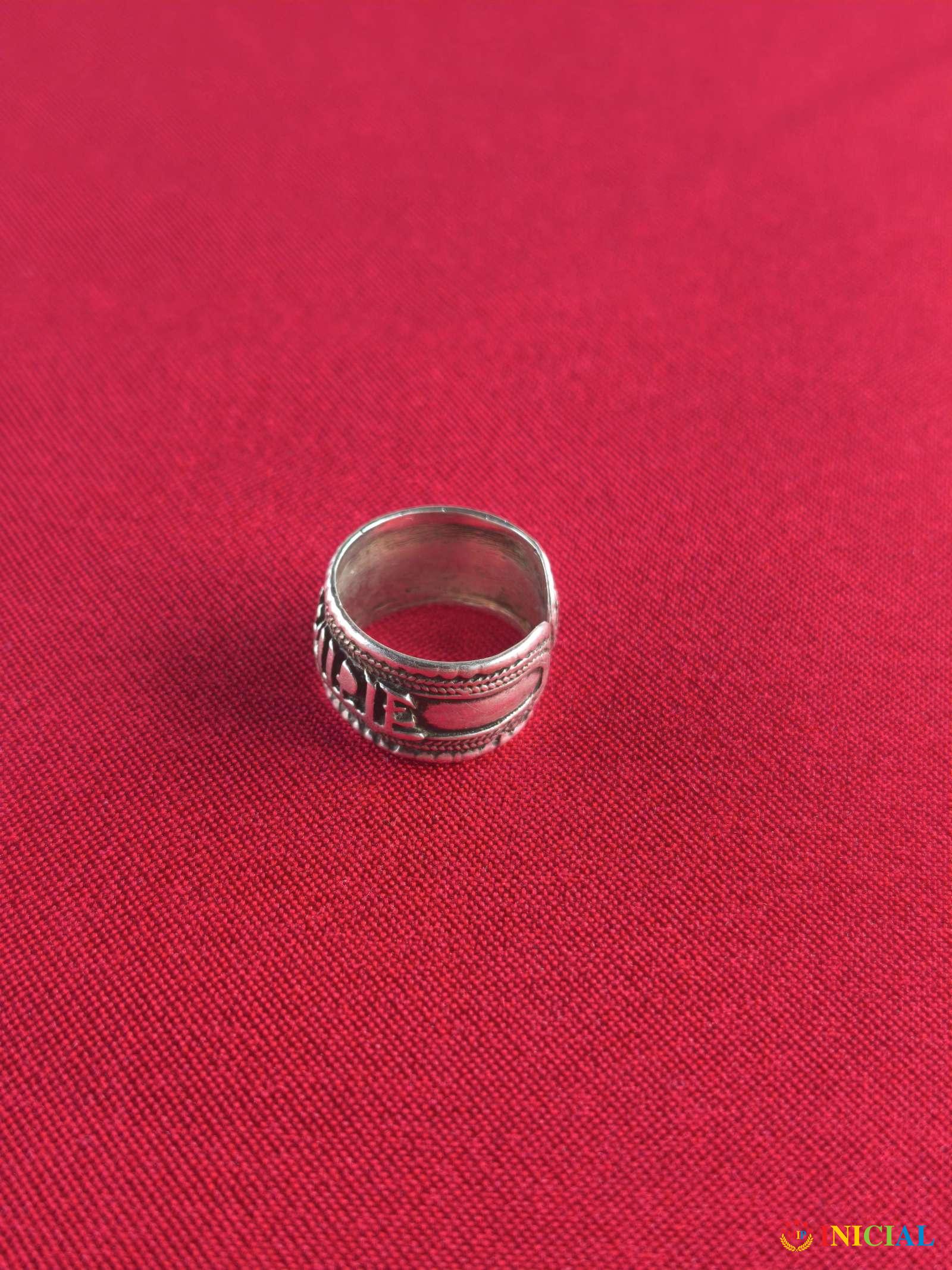 Srebrni prsten sa indijskim slovima,ima 1 zig,precnik 19mm,tezina 6,2gr.