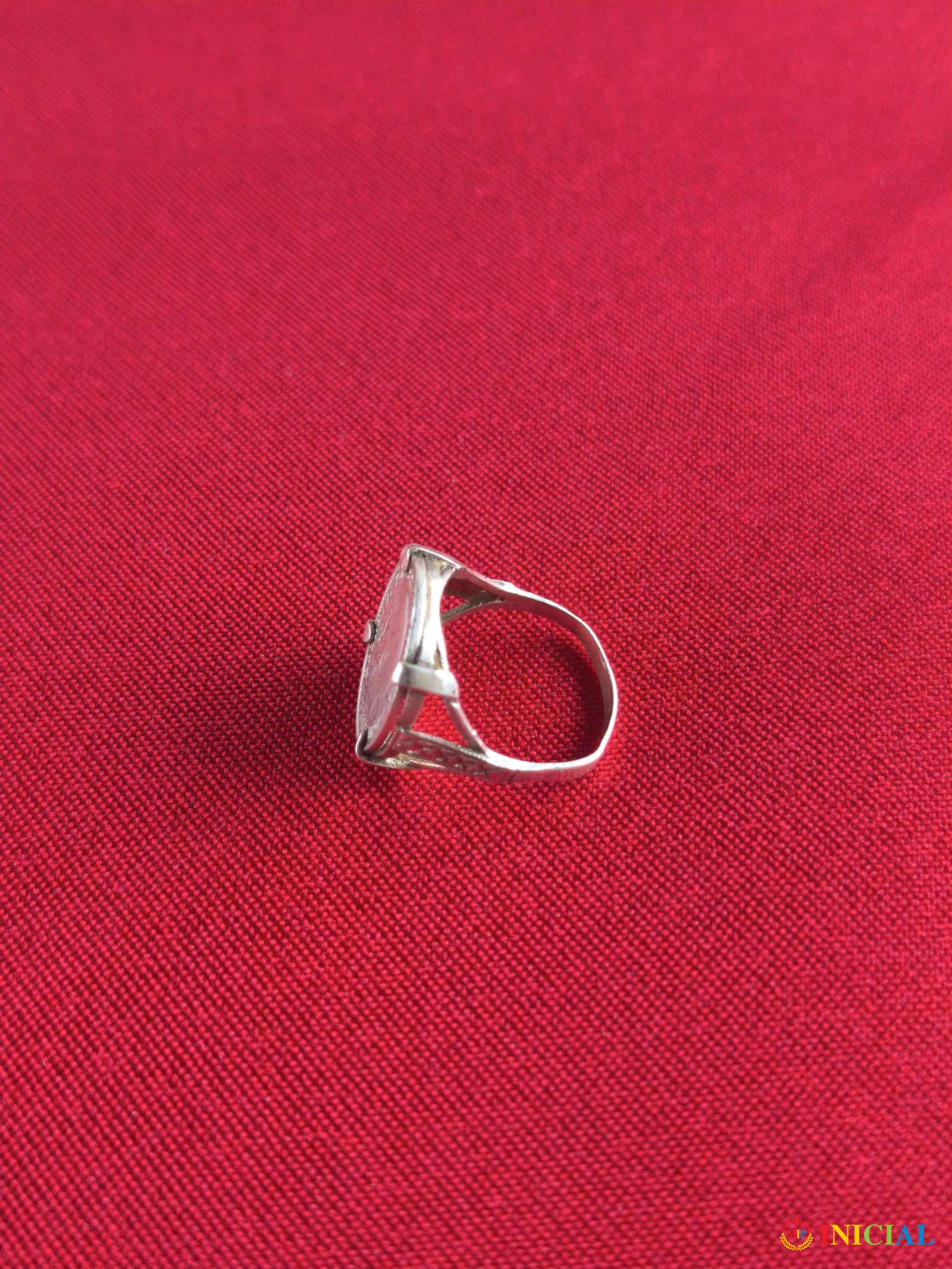 Srebrni prsten sa kamenom crnog Oniksa i likom Indijanca,ima 2 žiga,prečnik 17mm,tezina 3,9gr.