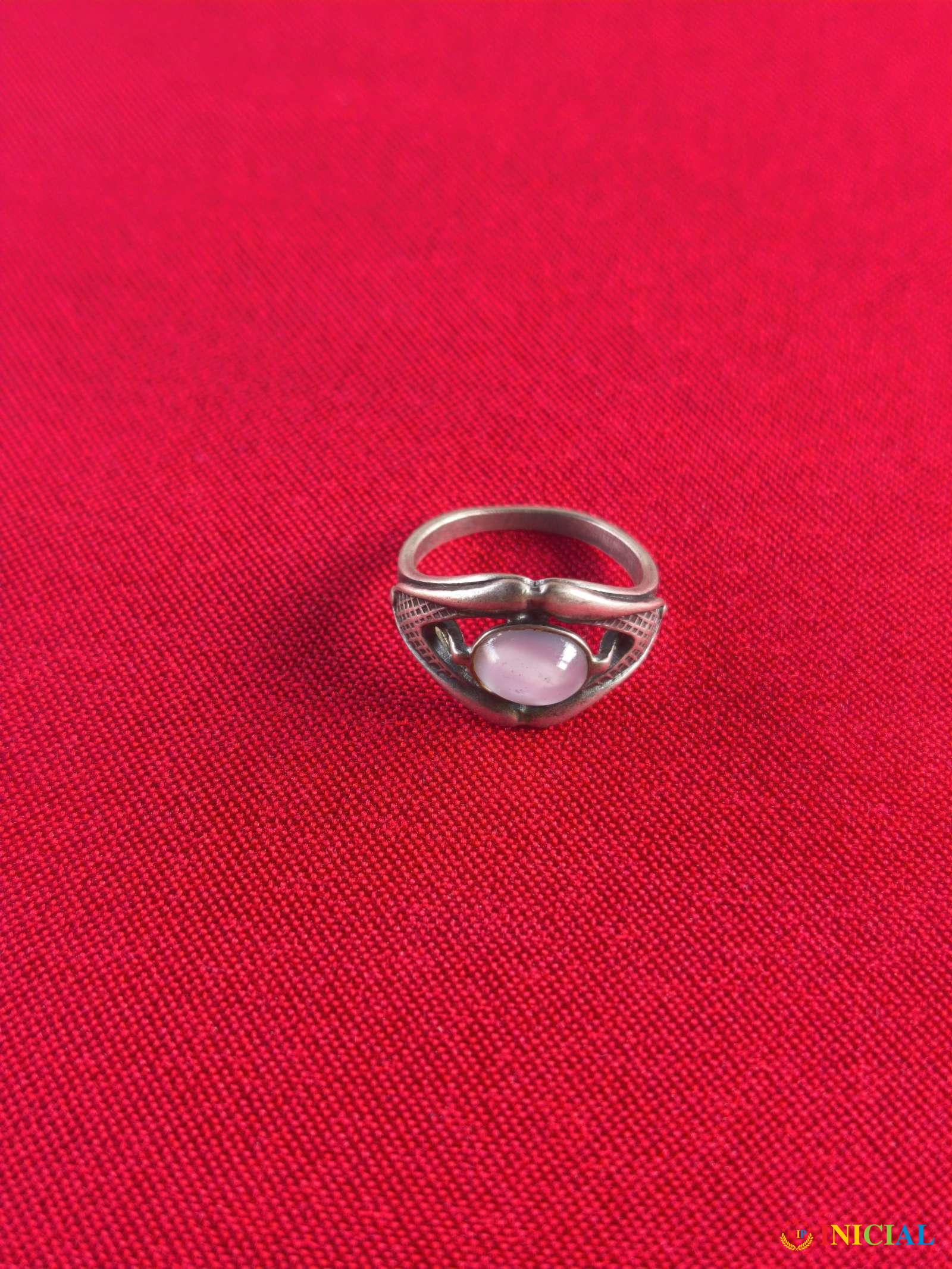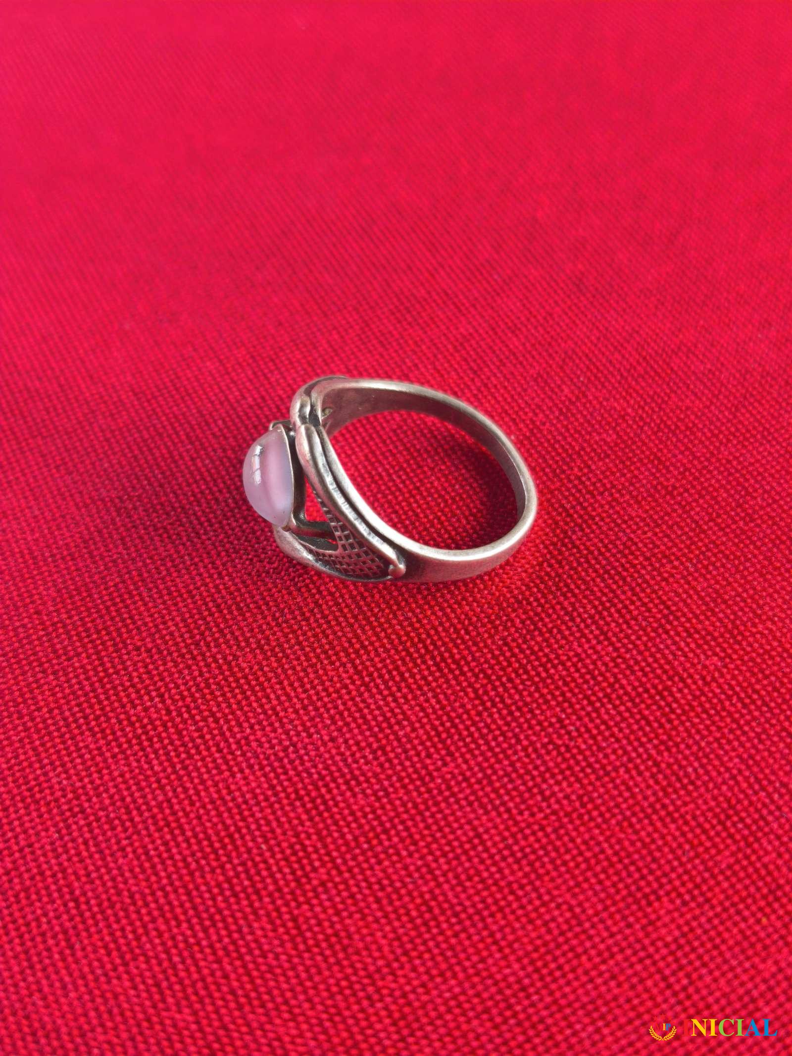 Srebrni zenski prsten sa mesečevim kamenom,ima 1 zig,prečnik 17mm,tezina 3,5gr.