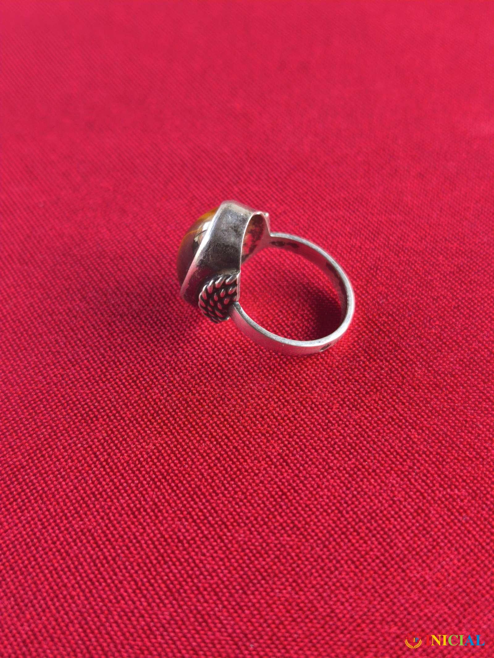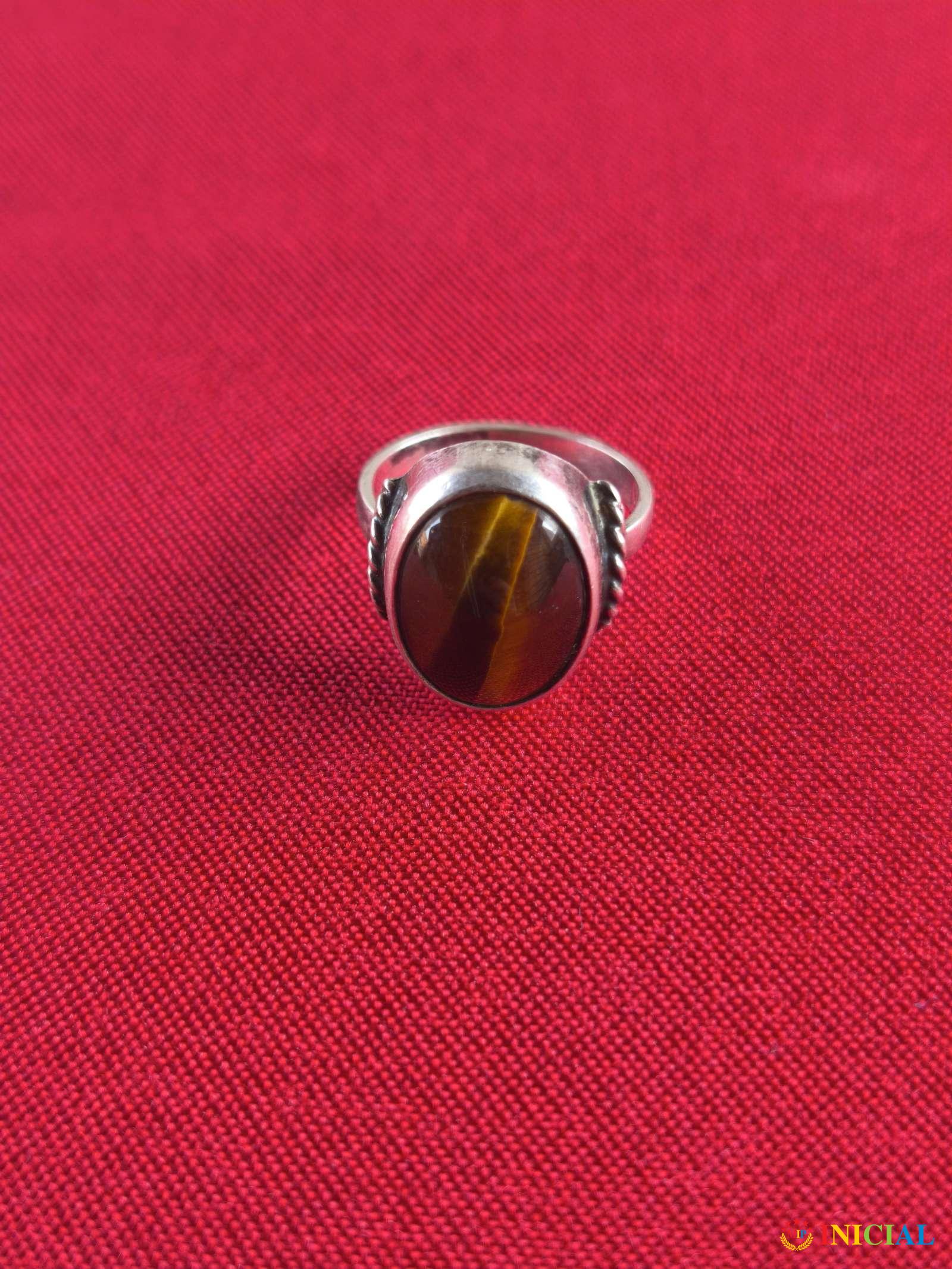 Srebrni zenski prsten sa poludragim kamenom Tigrovo oko,ima 3 žiga,prečnik 17mm,tezina 4,4gr.