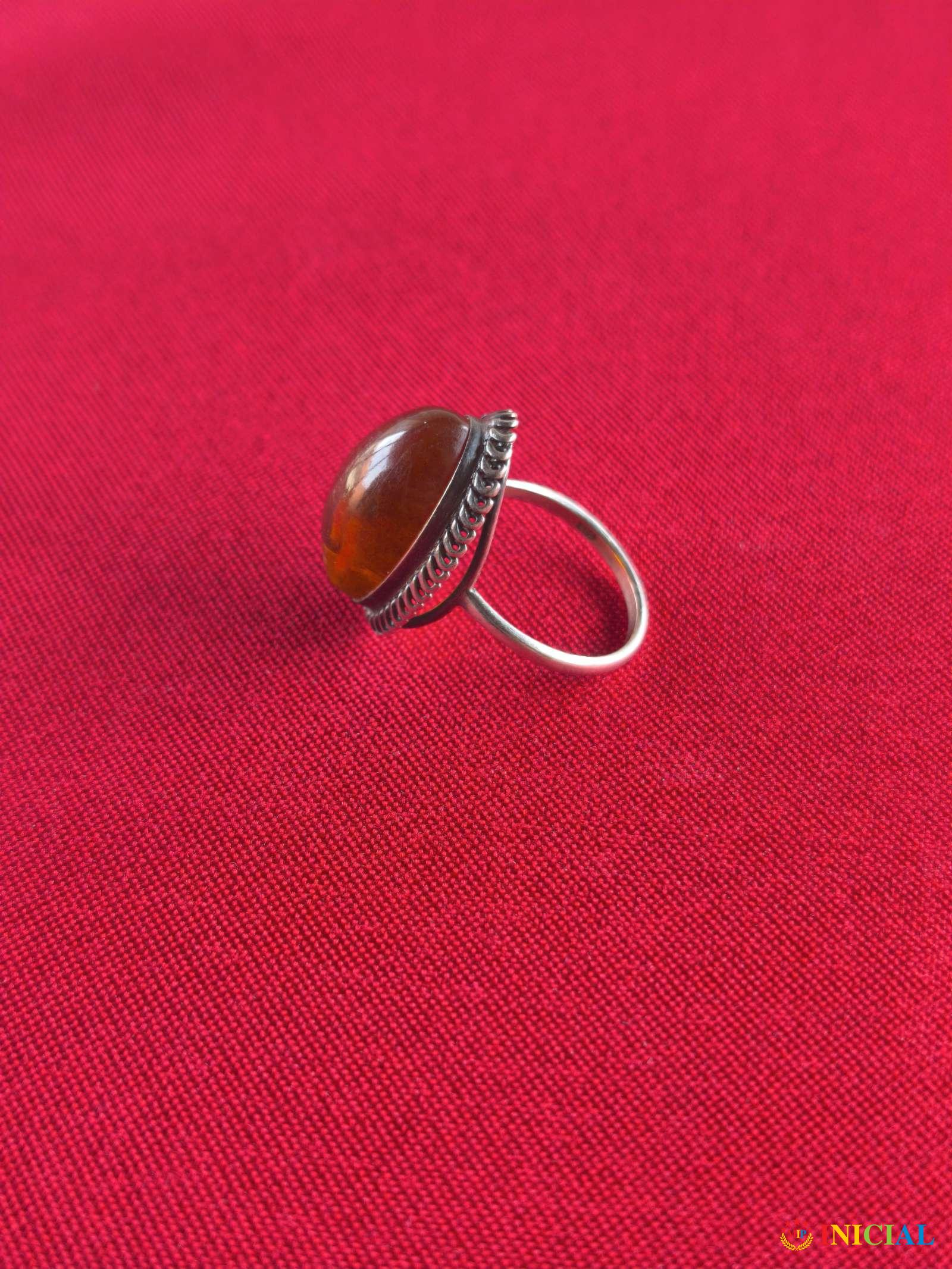 Srebrni zenski prsten sa prirodnim Cilibarom,ima 2 žiga,prečnik 18mm,poreklo Carska Rusija,tezina 4,0gr,dim.kamena 20x11mm.