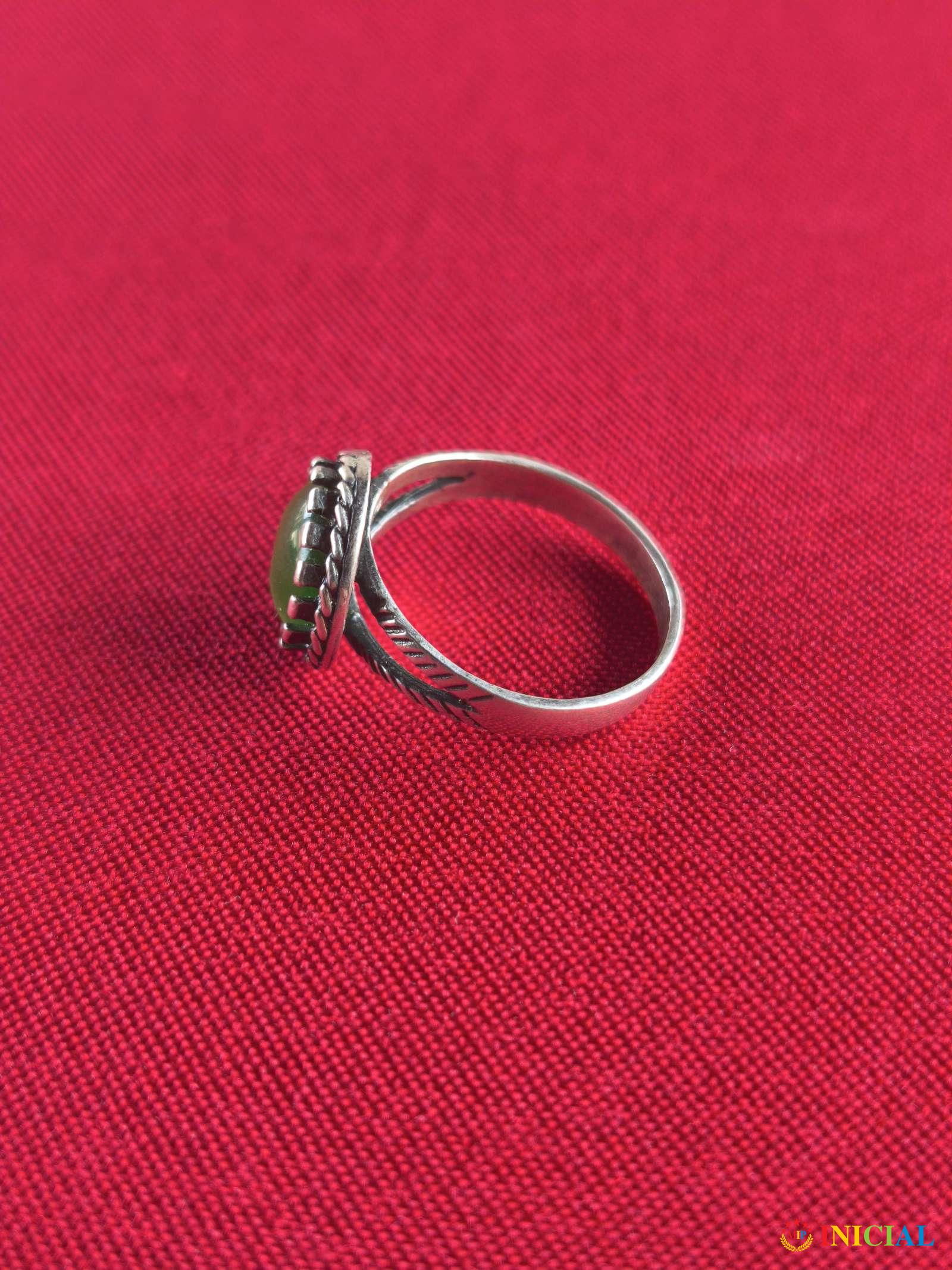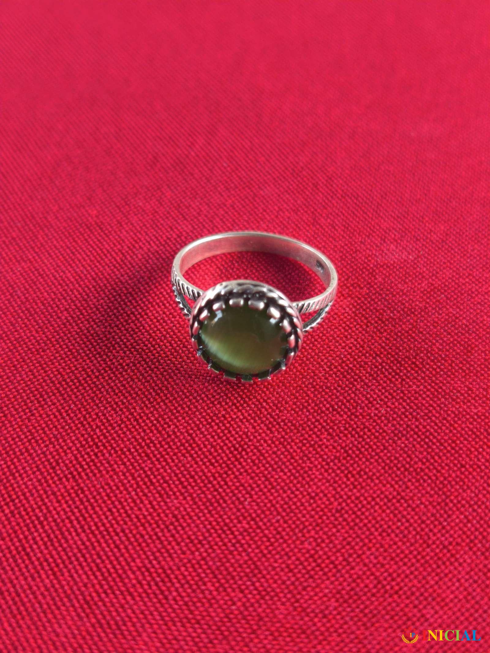 Srebrni zenski prsten sa kamenom Malahita,žig 925 + 1 žig,prečnik 19mm,tezina 2gr.