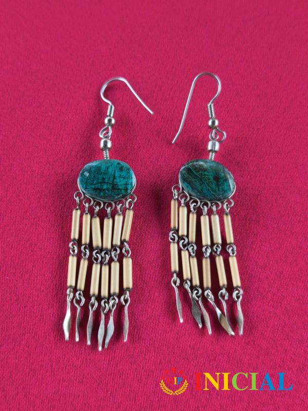 Par nausnica od kamena Malahit i bambusa
