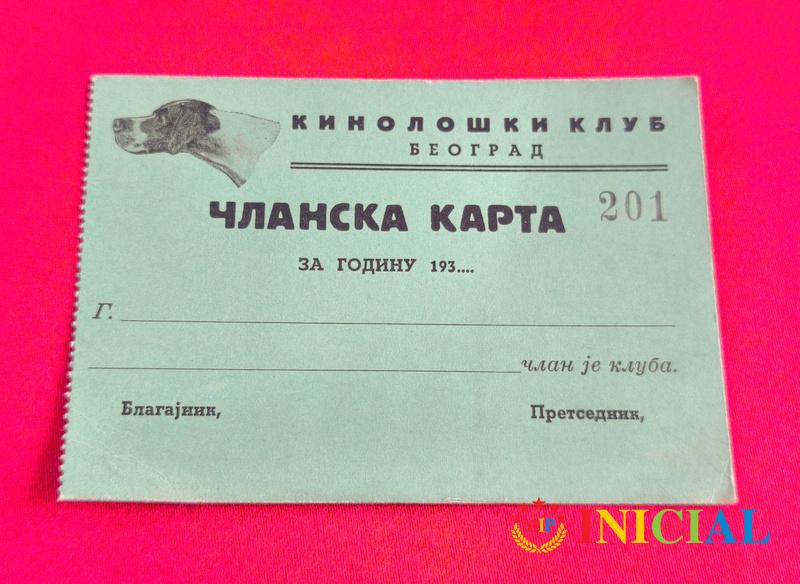 Blanko clanska karta Kinoloskog Kluba Beograd,iz oko 1930-ih god.