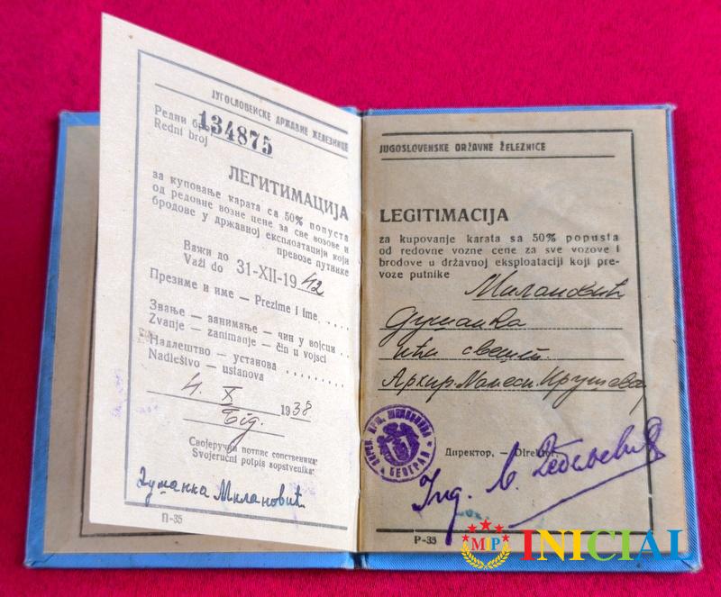 Legitimacija JDZ za kupovanje karata sa 50 % popusta,Beograd,1938.god,28str.