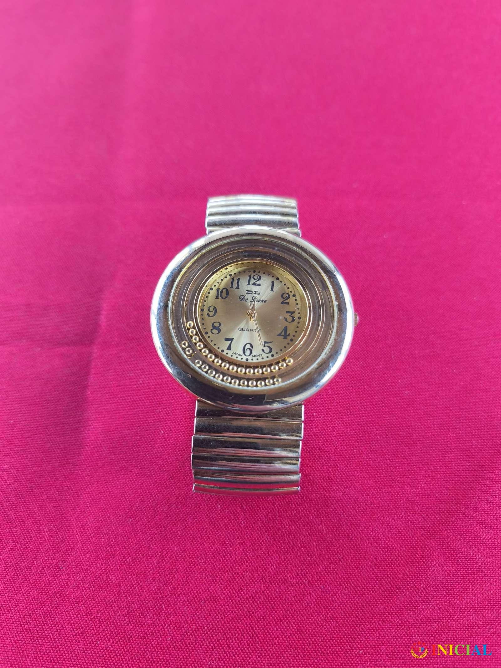 Zenski kvarcni sat De Luxe,sa elastičnom narukvicom,prečnik brojčanika 50mm,made in Japan.