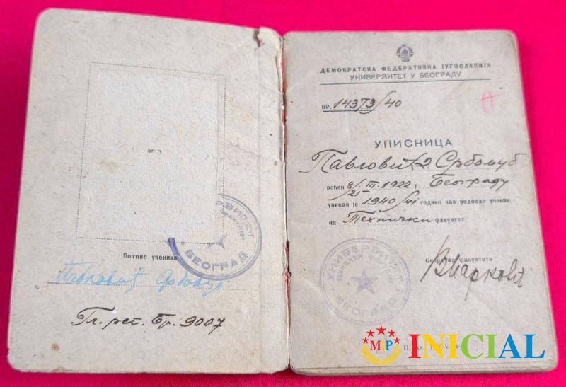 Svedocanstvo srednje tehnicke skole,Beograd,1940.god.