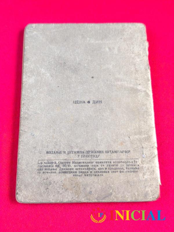 Uverenje o drzavljanstcu FNRJ,Beograd,1949.god.