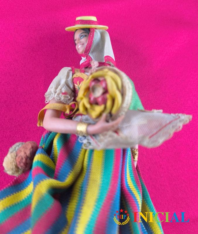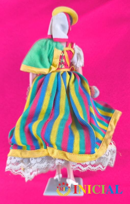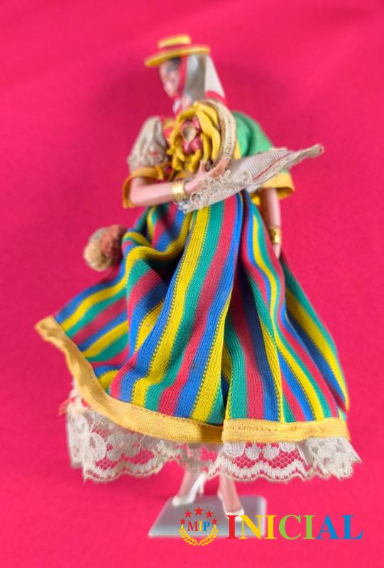 Stara spanska lutkica od plastike,sa postoljem,duz.23cm.