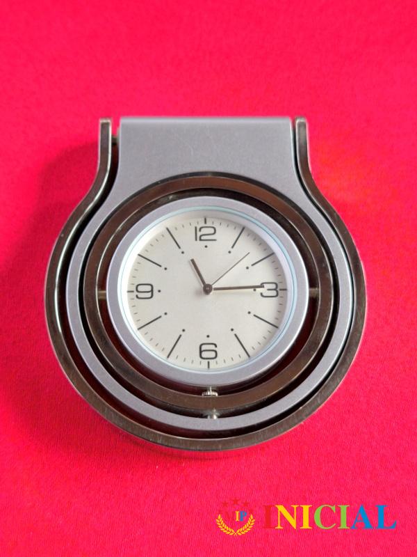 Putni sat u metalnoj kutijici,koji se automatski otvara,ima 4 kazaljke,dim.6,5 x 6,5 x 2,5cm.