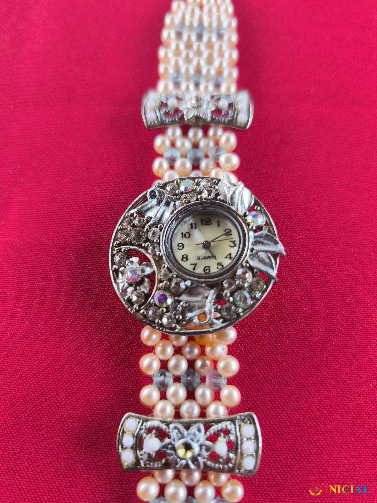 Prelep zenski kvarcni sat sa puno Cirkona i Bisera.