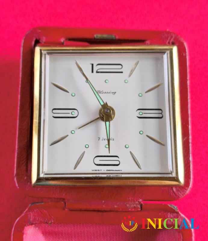 Putni sat Blessing,u koznoj kutijici,ima 7 Rubina,fluo kazaljke,dim.8 x 7 x 3cm,made in West Germany.