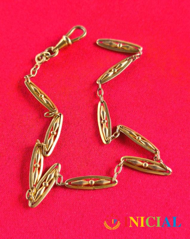 Pozlacen lanac za dzepni sat,kome nedostaje samo 1 alkica,duz.32,5cm.