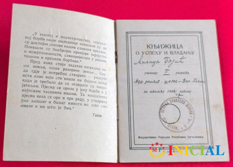 Djacka knjizica iz 1946.god,Velika Plana,16str.
