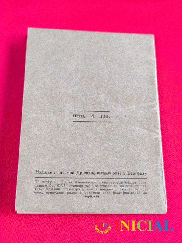 Uverenje o drzavljanstcu FNRJ,Beograd,1949.god.