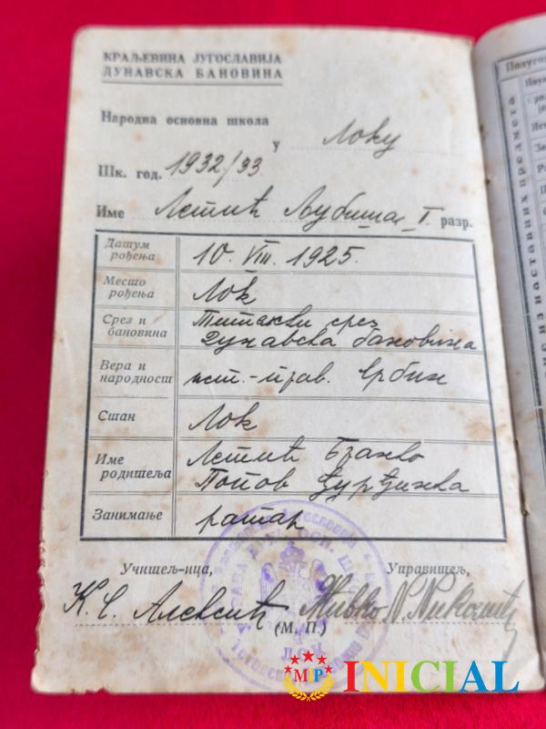 Djacka knjizica Kraljevine Jugoslavije,1932.god,12str.