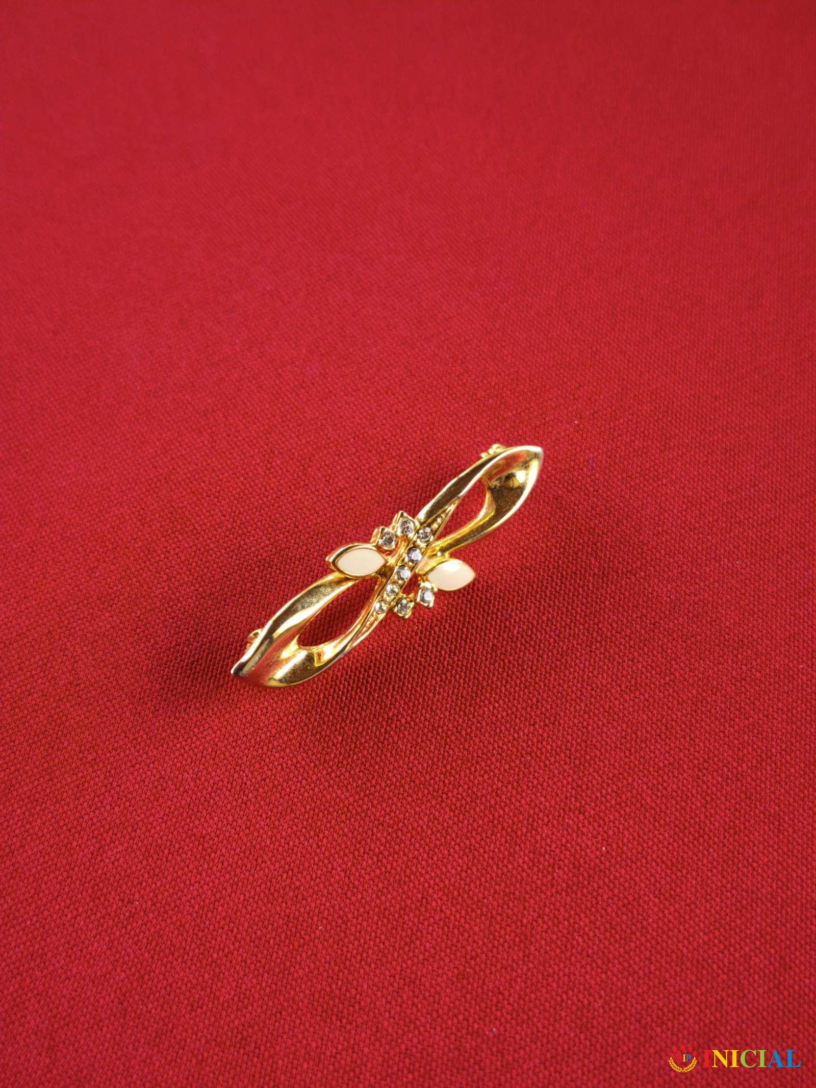Pozlaćen zenski bros sa Cirkonima i emajliranim listovima.