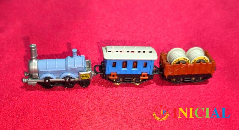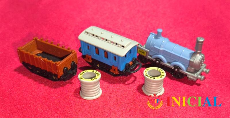 Decja,plasticna lokomotiva sa dva vagona.