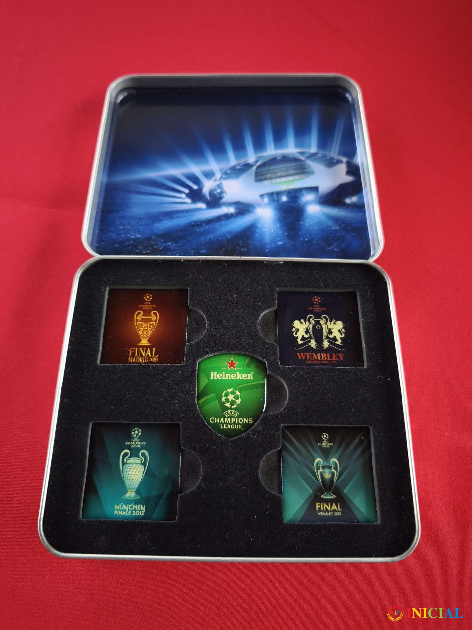 Komplet 5 broseva Heineken sampionska liga,u kutijici.