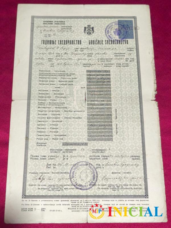 Svedocanstvo srednje tehnicke skole,Beograd,1940.god.