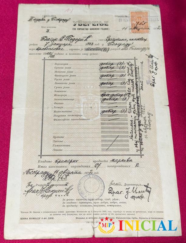 Svedocanstvo srednje tehnicke skole,Beograd,1940.god.