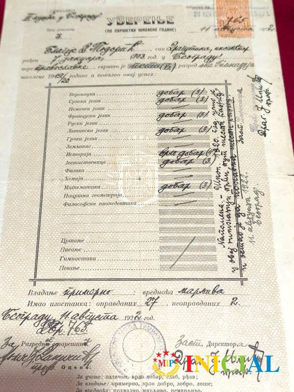 Uverenje III muske gimnazije u Beogradu,Kraljevina Srbija,1922.god.