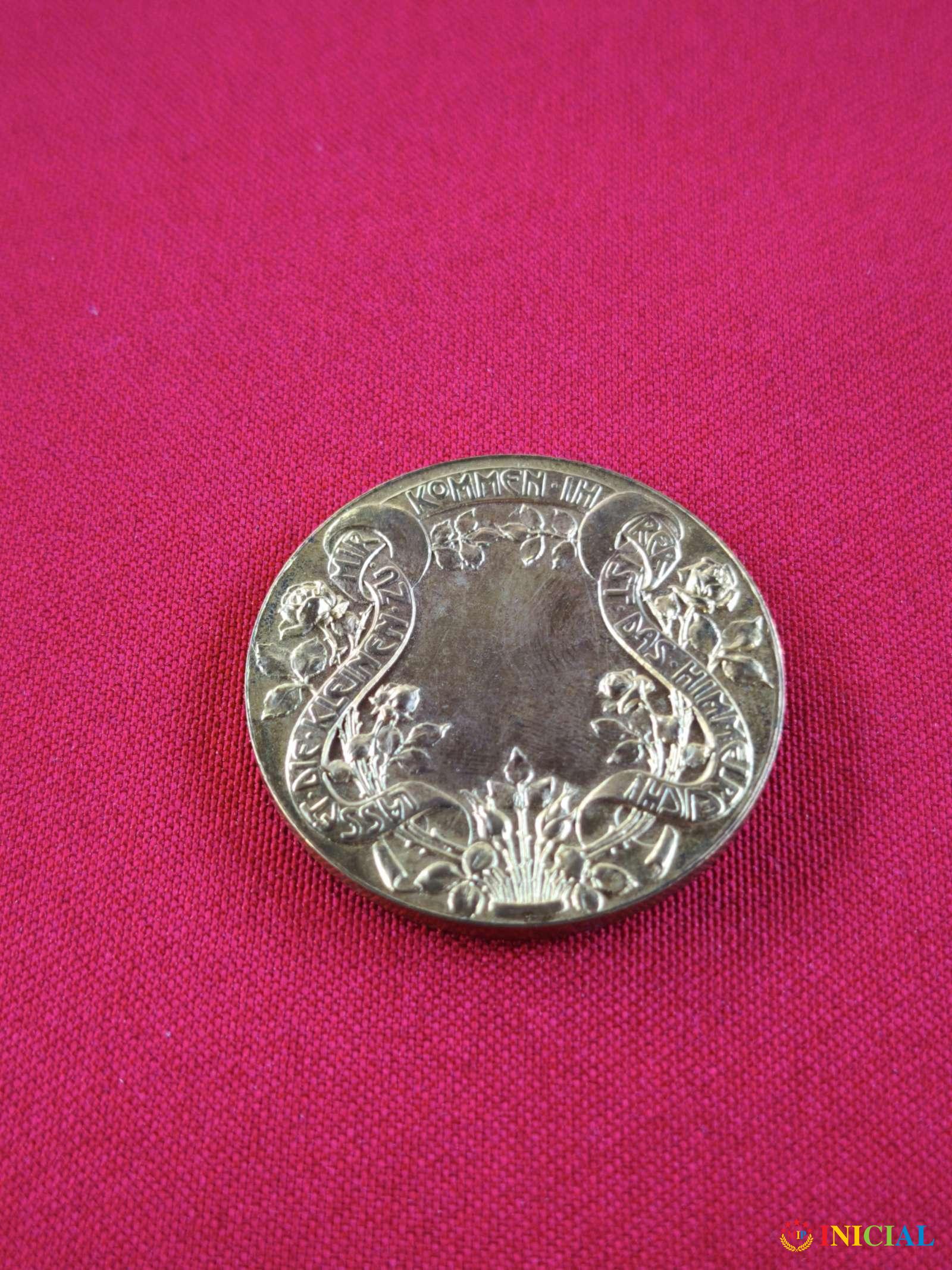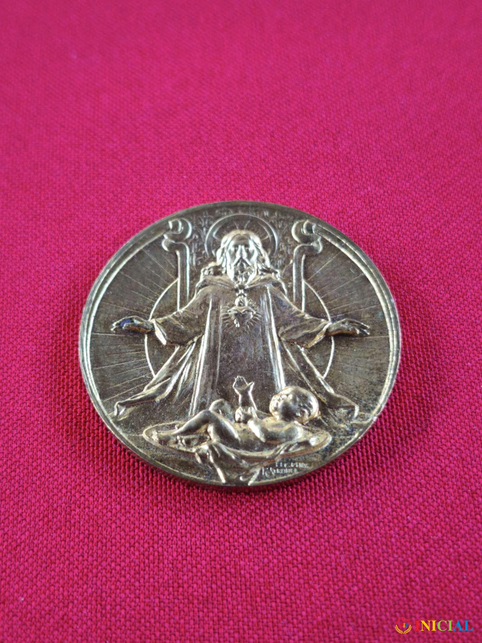 Zlatnik Isus Hrist sa tekstom na nemackim "Pustite decu k meni...",pozlata.