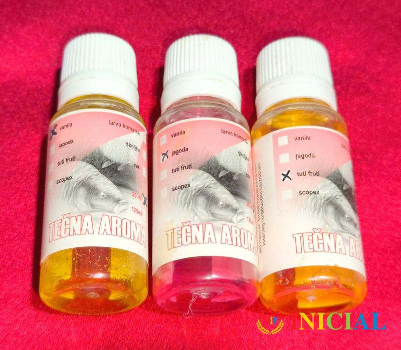 Komplet 3 bocice tecne arome za ribolov,ukus vanila,jagoda i tuti fruti,od po 20ml.