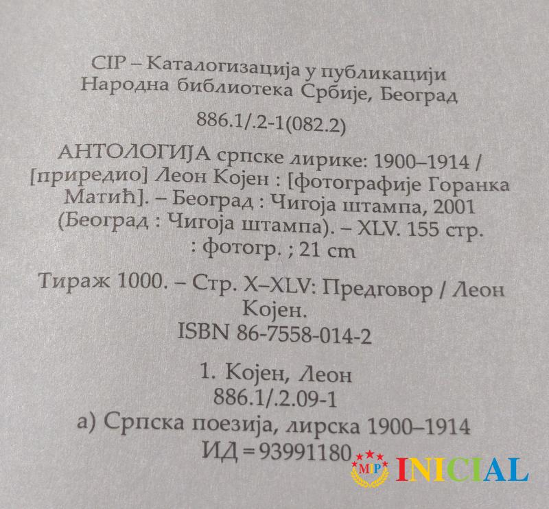 Antologija novije srpske lirike,B.Popovic,Beograd,1937.god,str.296,tvrdi povez,ostecena rikna !