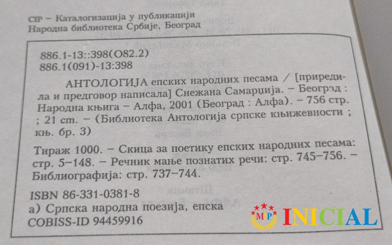 Antologija epskih narodnih pesama.