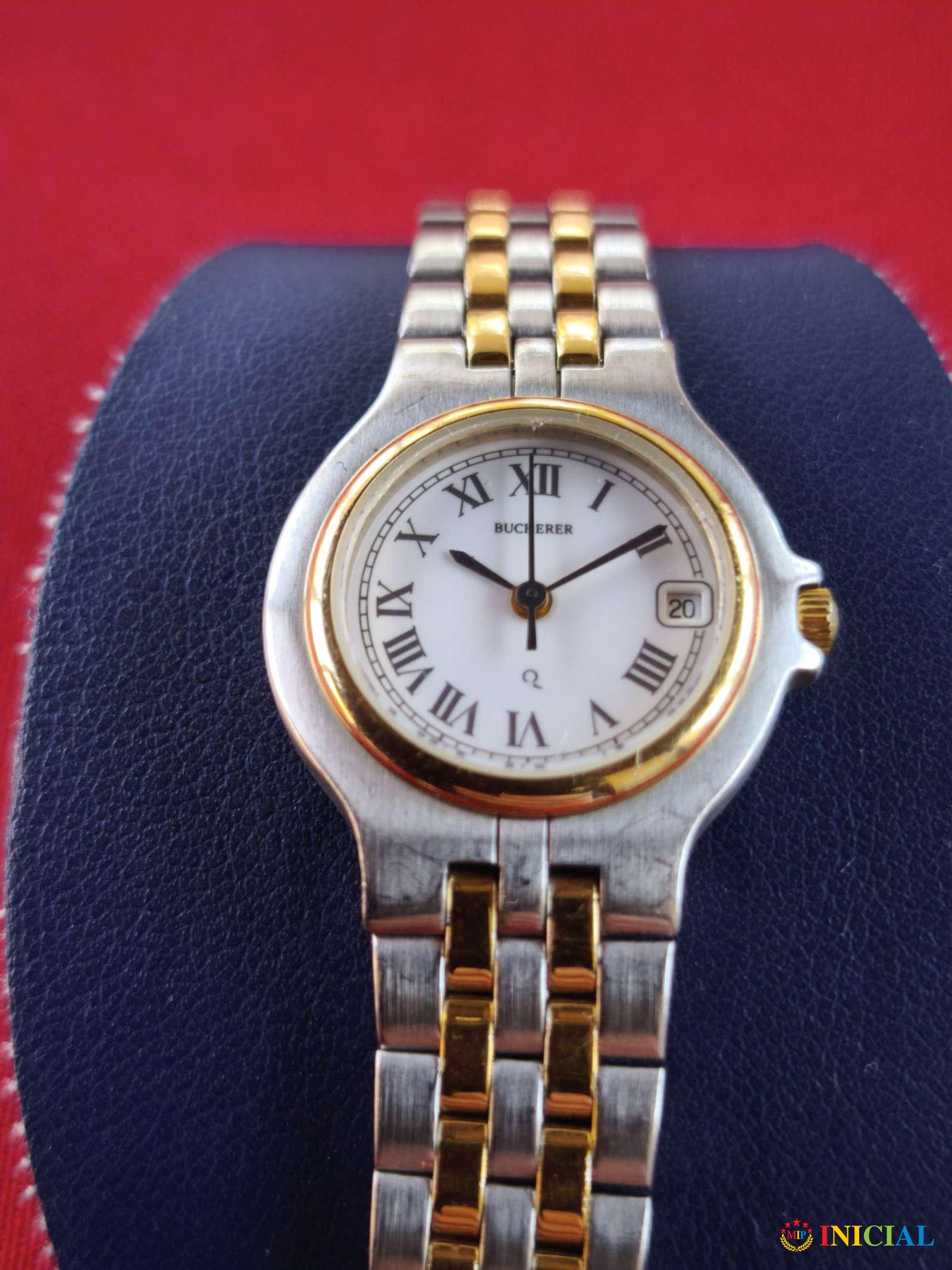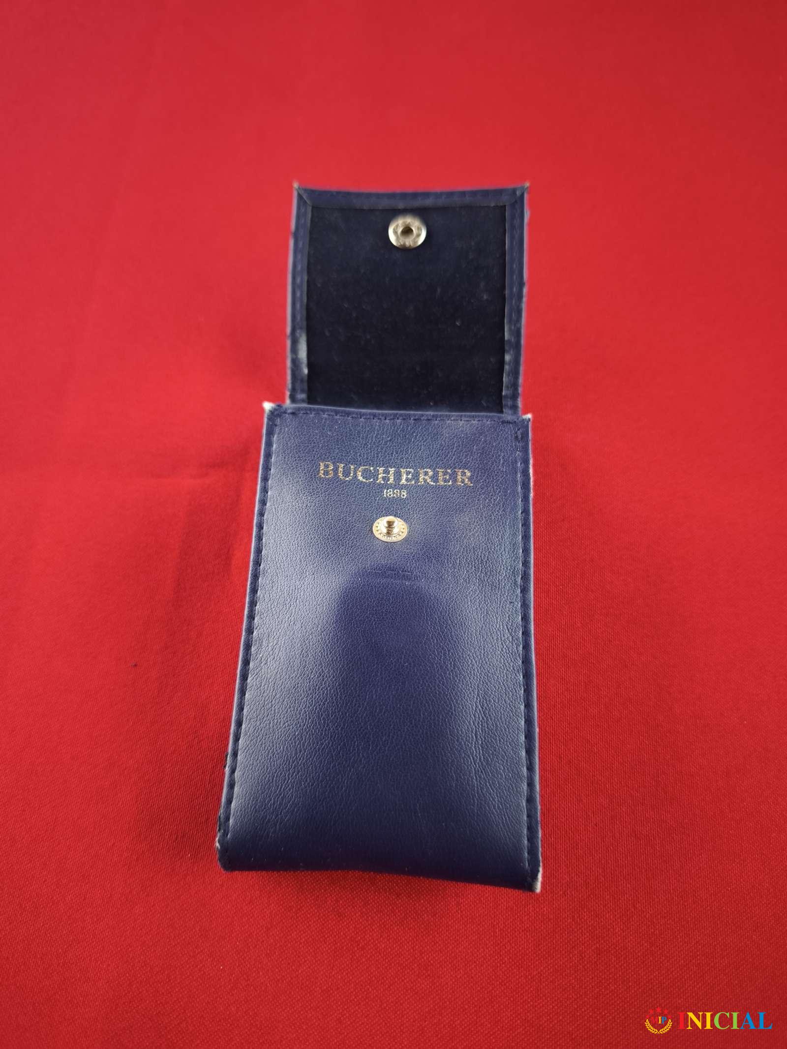 Pozlaćen,zenski sat Bucherer 1888,sa koznom futrolom.