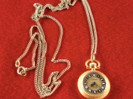 Pozlaćen zenski lancic sat Royal,sa krunicom od crnog Oniksa,duz.lanca 54cm,dim.brojcanika 30 x 22mm,made in Swiss.