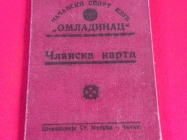 Clanska karta cacanskog sportskog kluba Omladinac,1938.god,8 str.