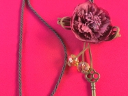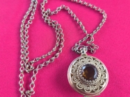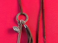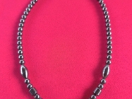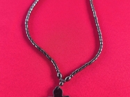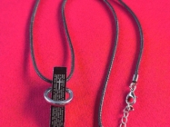 Ogrlica sa priveskom od Hematita na kome je duhovni zapis na spanskom,duz.28cm.
