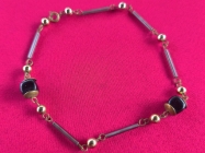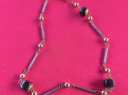 Pozlacena zenska ogrlica sa kamenom crni Oniks,Aventurin i 12 manjih Cirkona,duz.18cm.