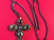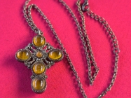 Lanac sa krsticem(55mm) na kome je 6 kamena Cilibara i 5 kamena poludragih sa druge strane,duz.30,5cm.